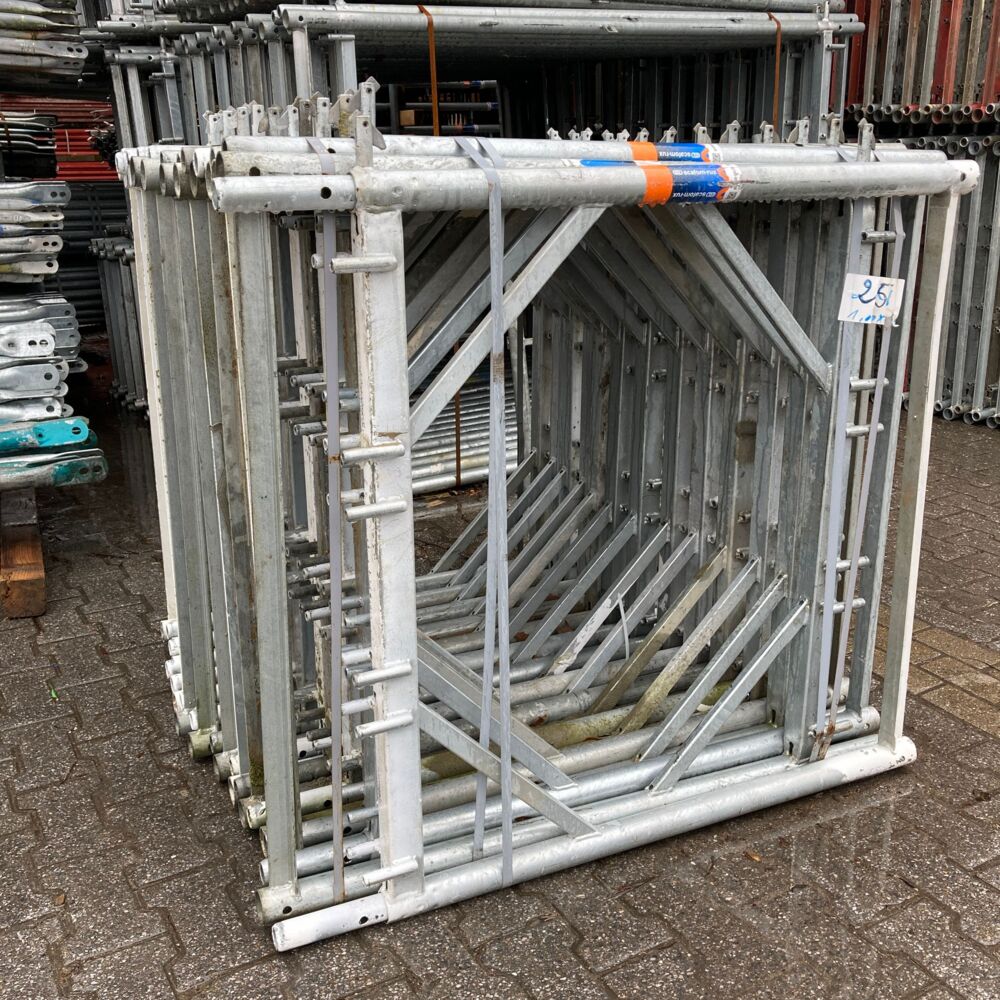 Den Rahmen könnte man als das Kernstück eines Fassadengerüstsystems beschreiben. Die Super Rahmen werden einfach aufeinander gesteckt und ermöglichen so einen schnellen und unkomplizierten Aufbau.